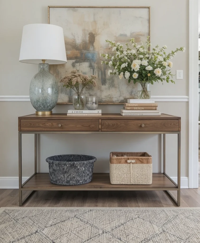 6. A Soft-Toned Entryway Table That Feels Calm and Airy