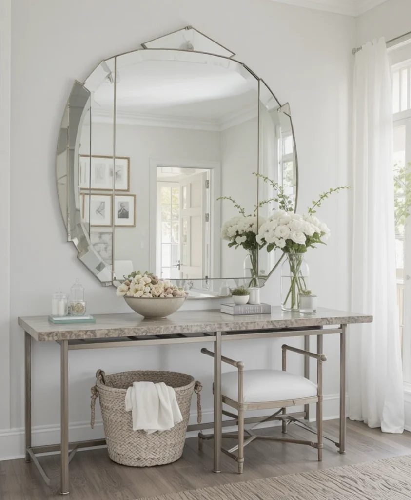 3. A Reflective Entryway Table That Instantly Expands the Space