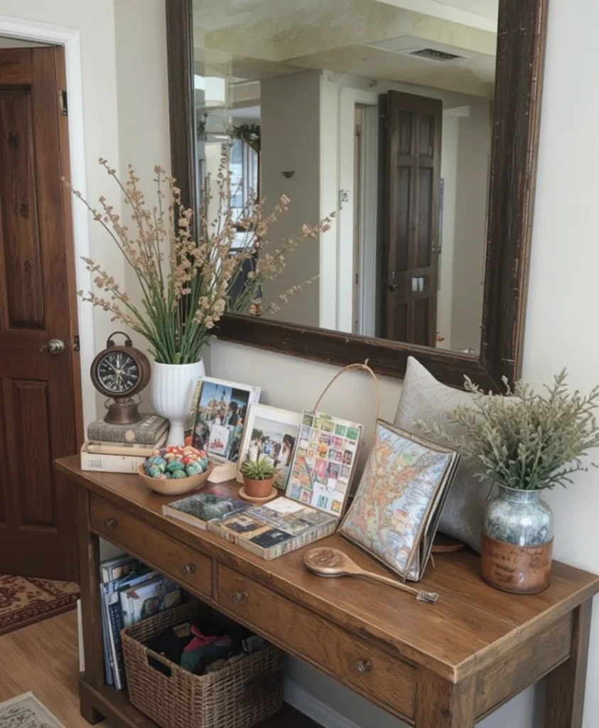 17. A Personal Entryway Table Filled with Meaningful Touches