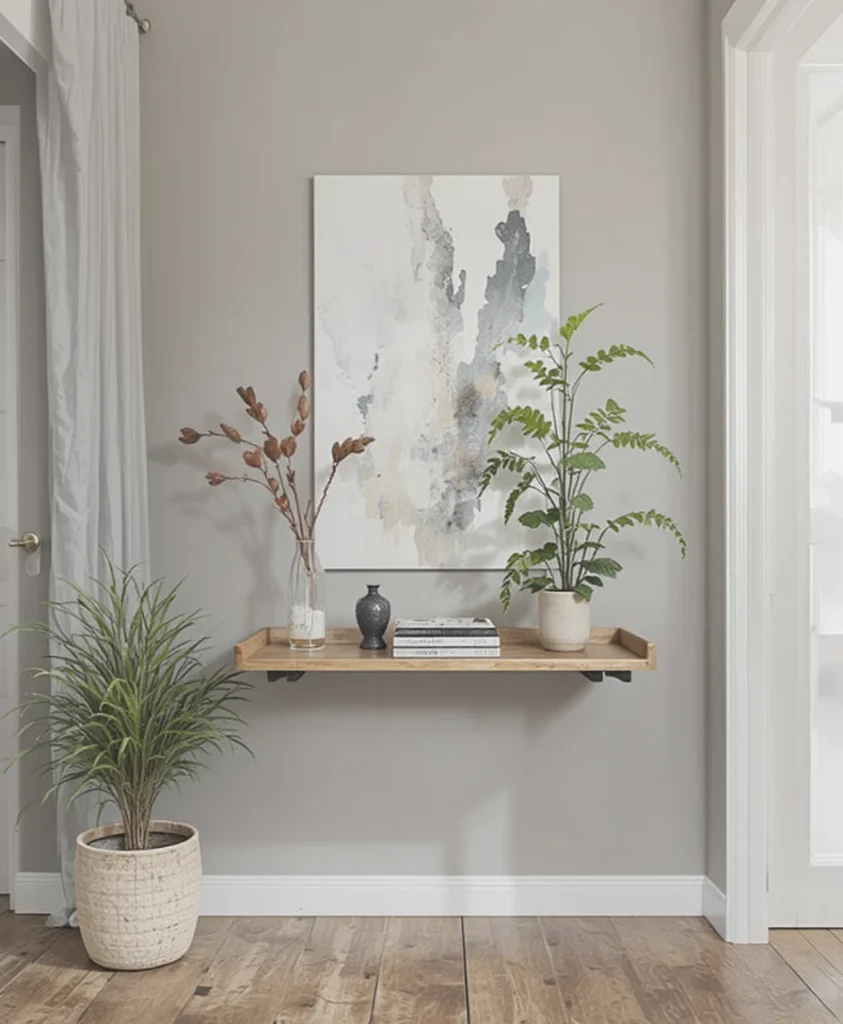 For smaller spaces, I sometimes use a floating Entryway Table attached to the wall. It keeps the floor clear and makes the area feel more open. The design feels modern and efficient without losing style. It’s perfect when I want to keep things minimal yet functional.