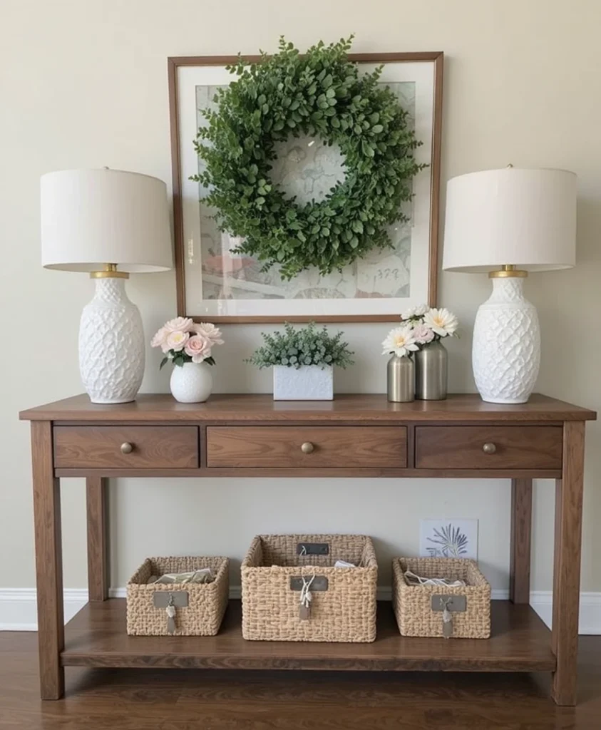 19. A Symmetrical Entryway Table That Feels Perfectly Balanced