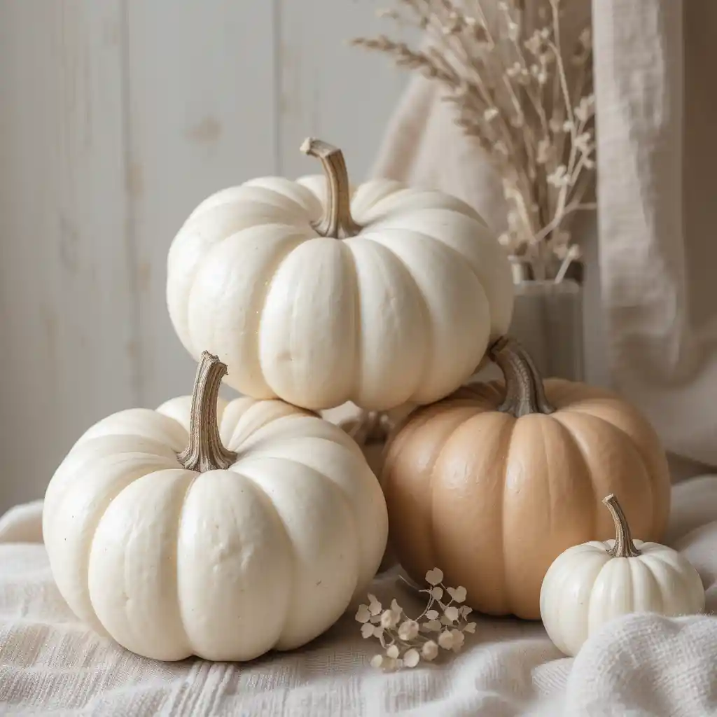 If you prefer a subtle style, opt for beige, cream, and muted tones instead of traditional bold colors. Pairing neutral pumpkins and soft textiles creates a calm fall atmosphere.