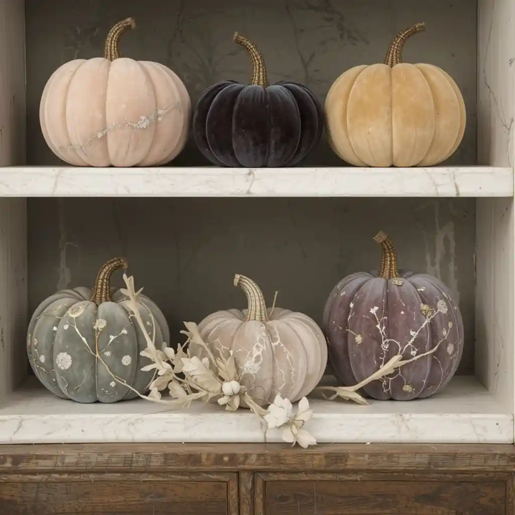 Velvet pumpkins add sophistication while keeping the seasonal theme alive. Use them as table decorations, shelf accents, or even in entryway displays for a chic look.