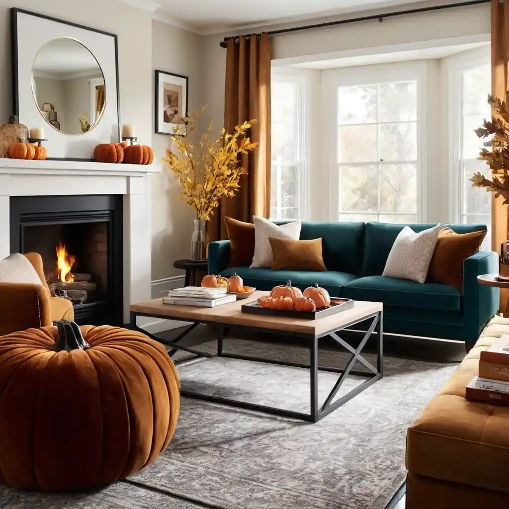 Rustic wood details such as reclaimed coffee tables, shelves, or sideboards give your living room a farmhouse feel while complementing the autumn aesthetic.
