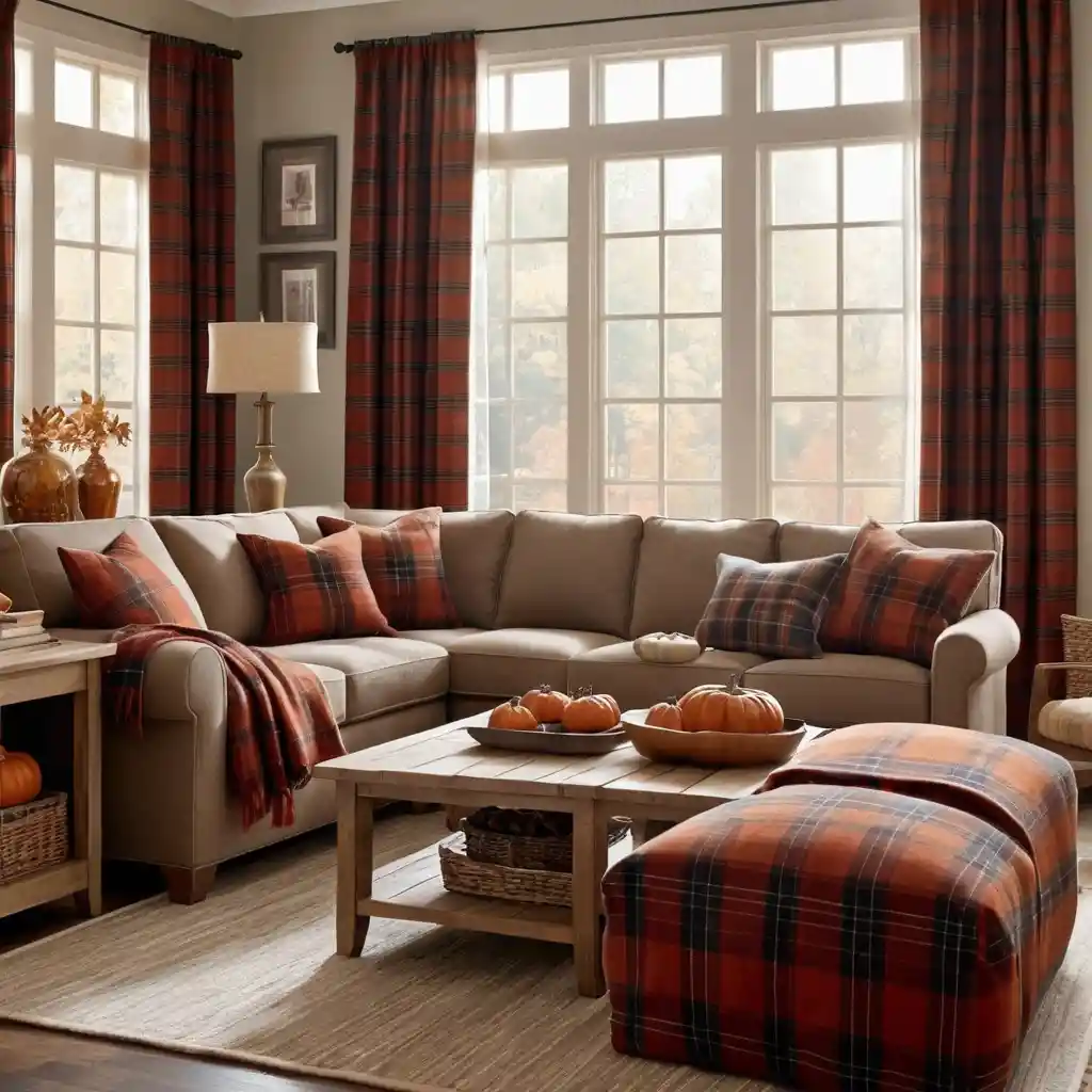 Plaid pillows, throws, and curtains bring a nostalgic fall vibe. This classic pattern is versatile and works in both rustic and modern spaces.