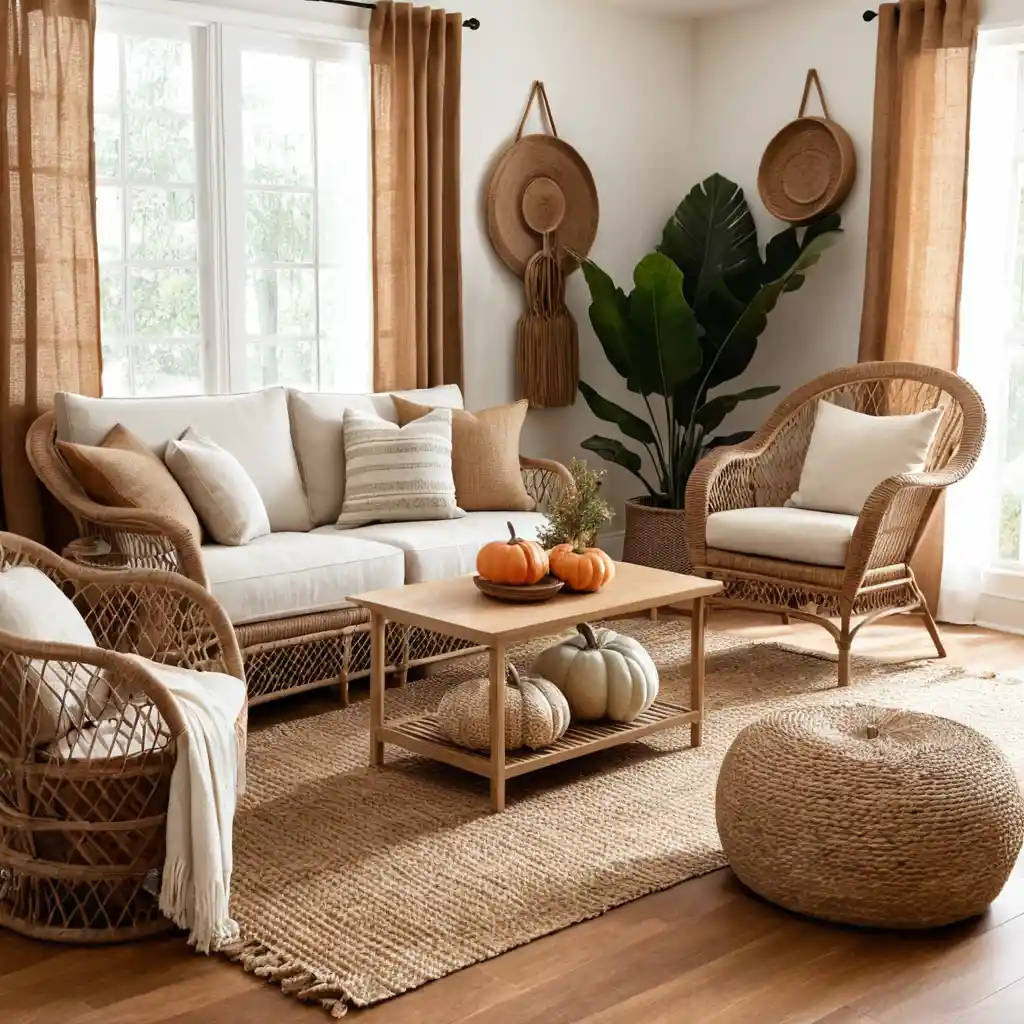 Incorporate jute rugs, wicker baskets, and rattan chairs. Natural fibers add texture and reflect the beauty of the season.