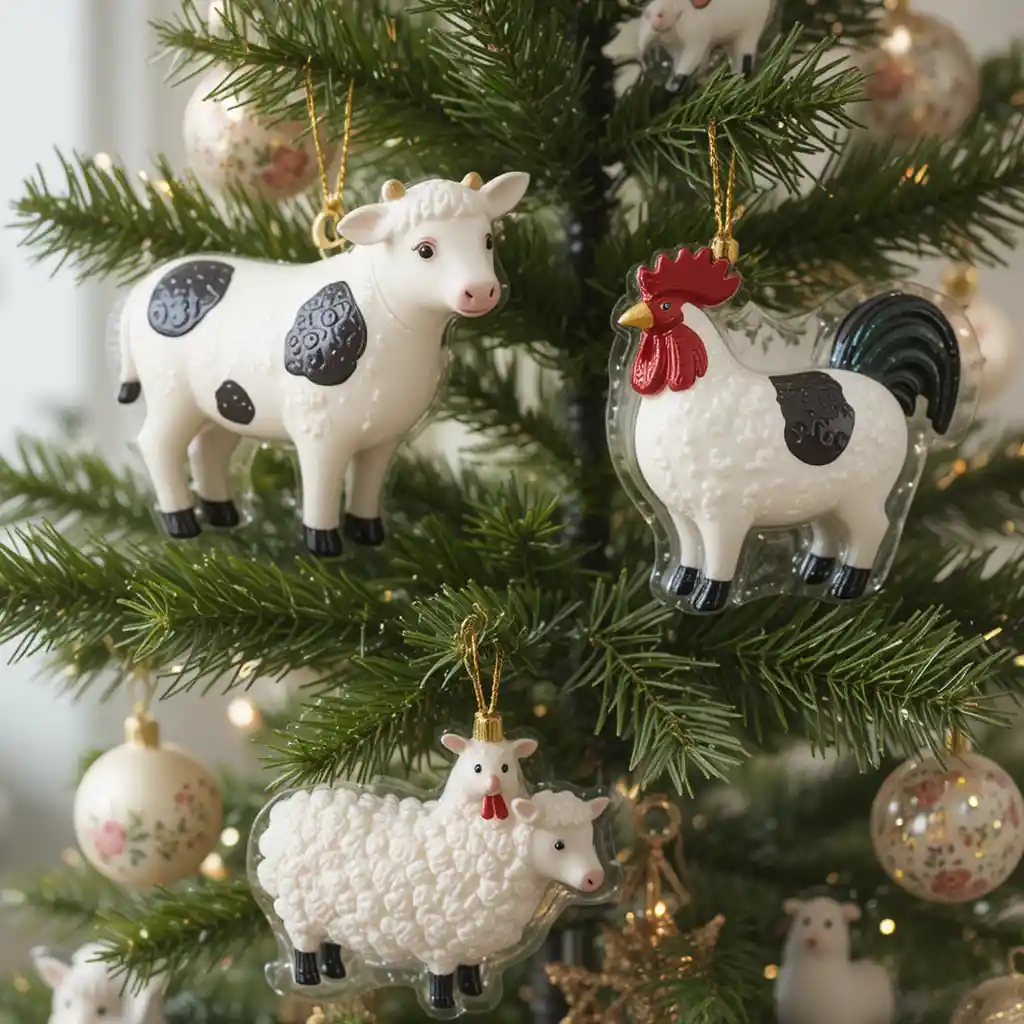 Add playful farmhouse character with cows, roosters, or sheep ornaments. They celebrate rural life while adding personality to your tree.
