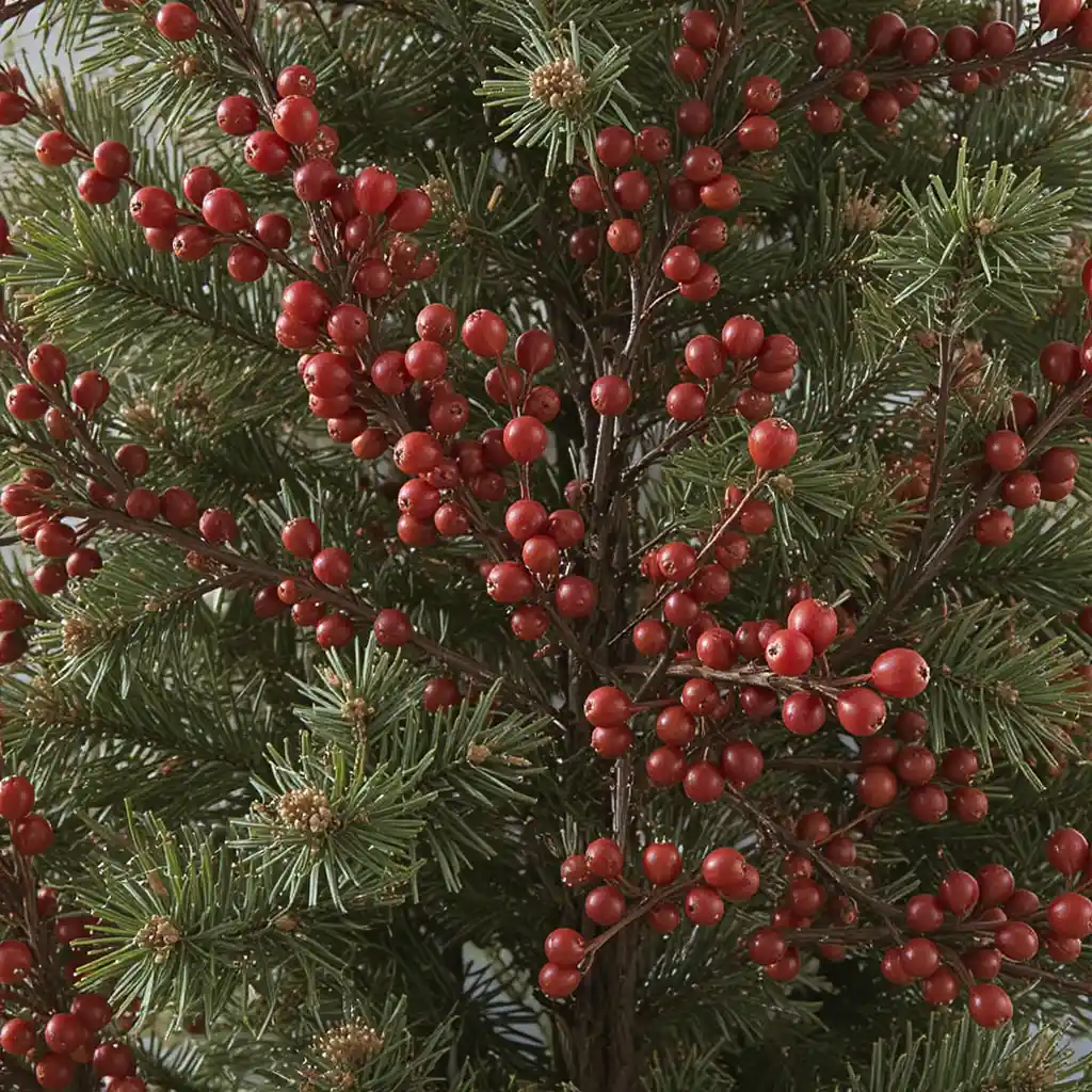 Pop bright red berry stems between branches for a festive farmhouse pop of color. The natural element balances neutral tones beautifully.