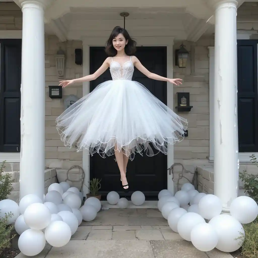 Create your own decoration using white helium balloons under a flowing dress. This simple DIY hack creates the illusion of a girl floating gracefully above the ground.