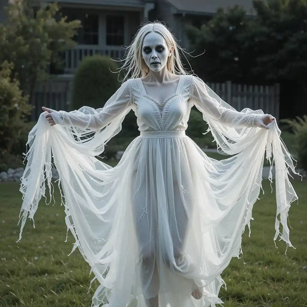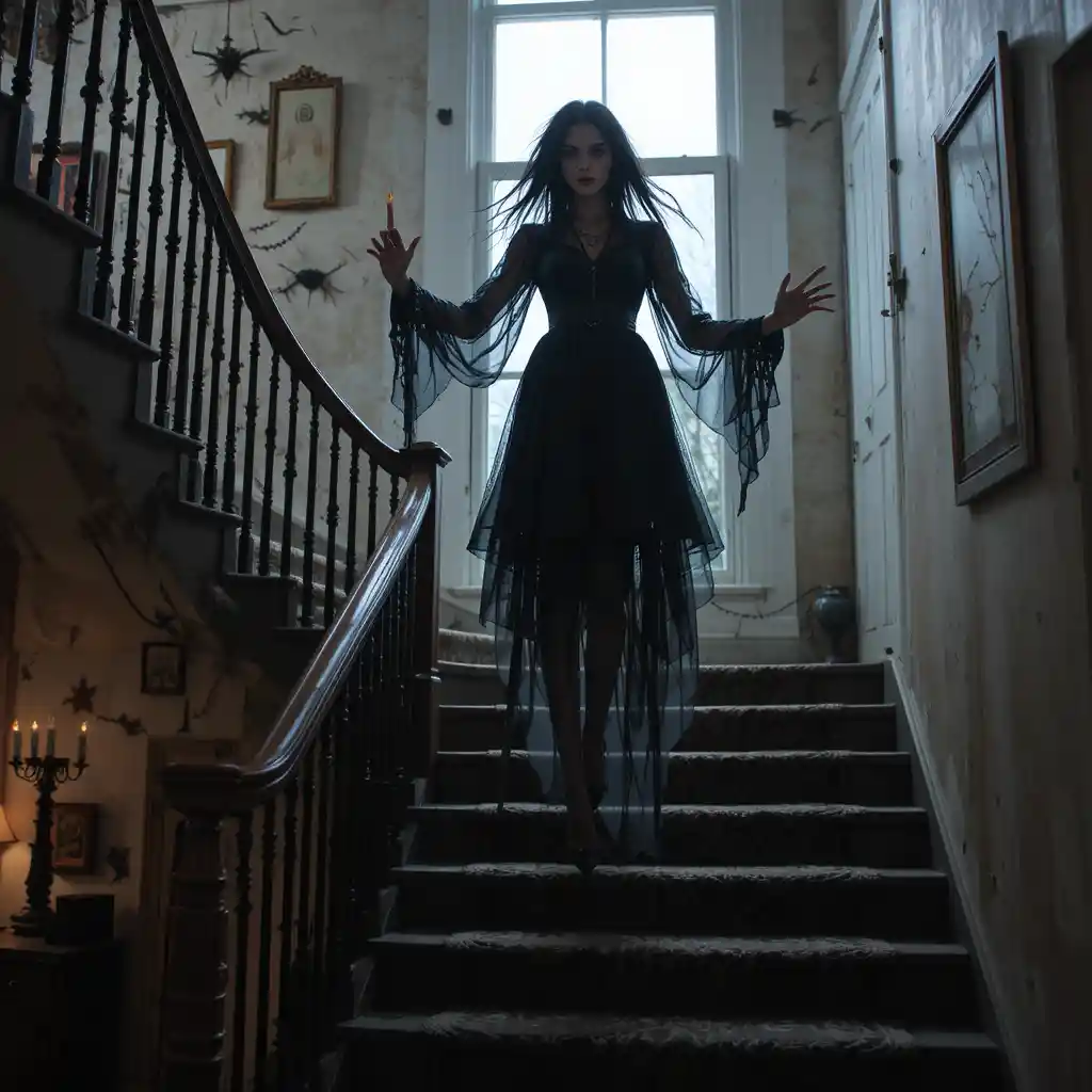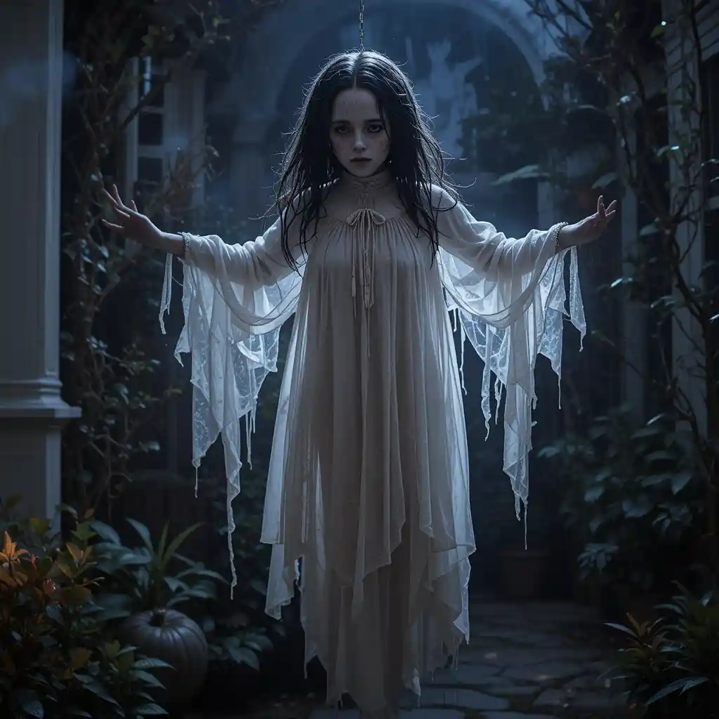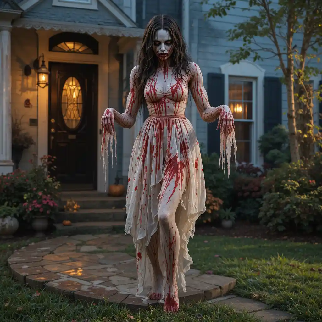 For a true jump scare, use a motion-activated floating girl. When someone passes by, she suddenly lights up or lets out a chilling scream, catching guests completely off guard.