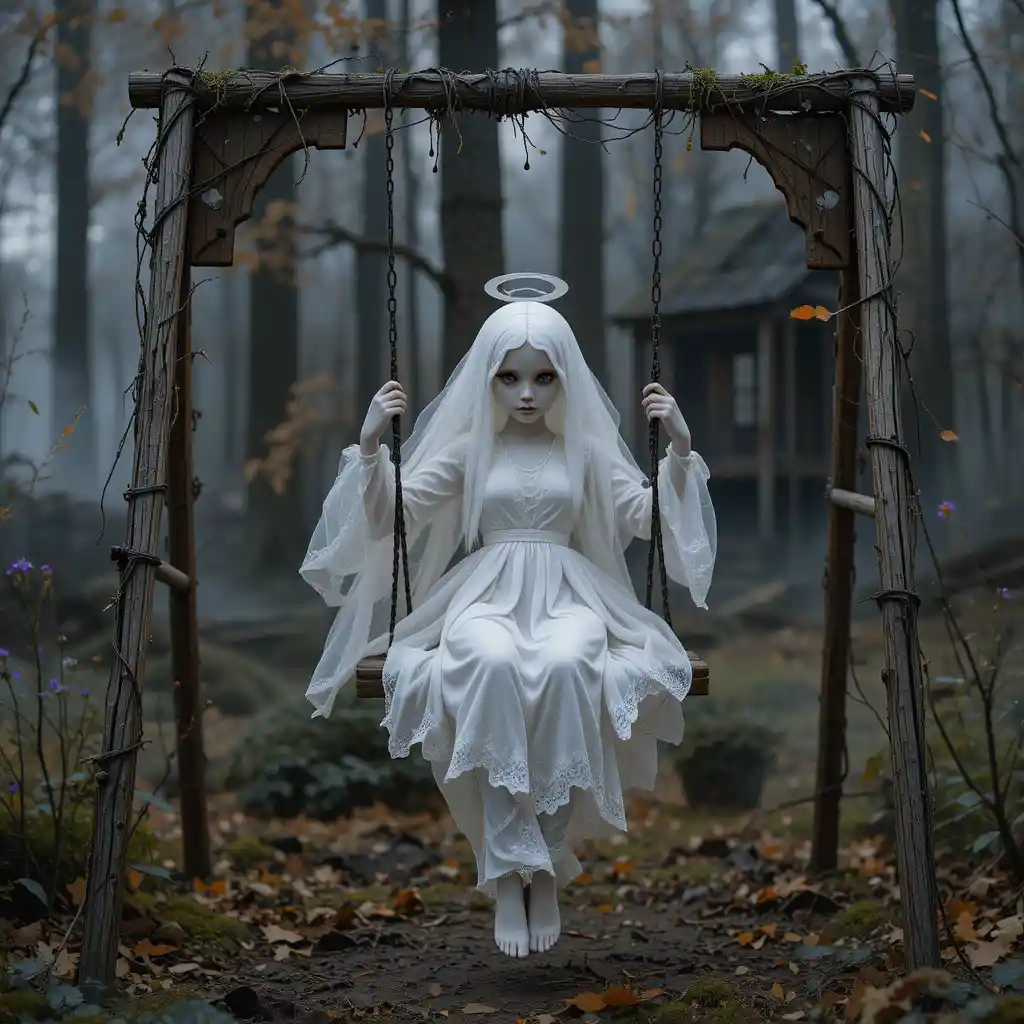 Suspend a swing and place the floating girl sitting on it. The gentle back-and-forth motion makes it look like she’s a ghost child stuck between two worlds.