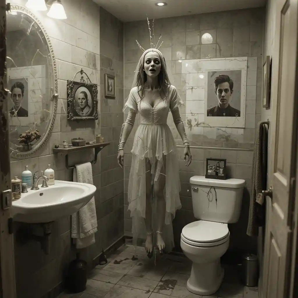 For an indoor scare, set up a floating girl in the bathroom with dim lighting. Guests who unsuspectingly enter will be frozen in shock at the chilling sight.