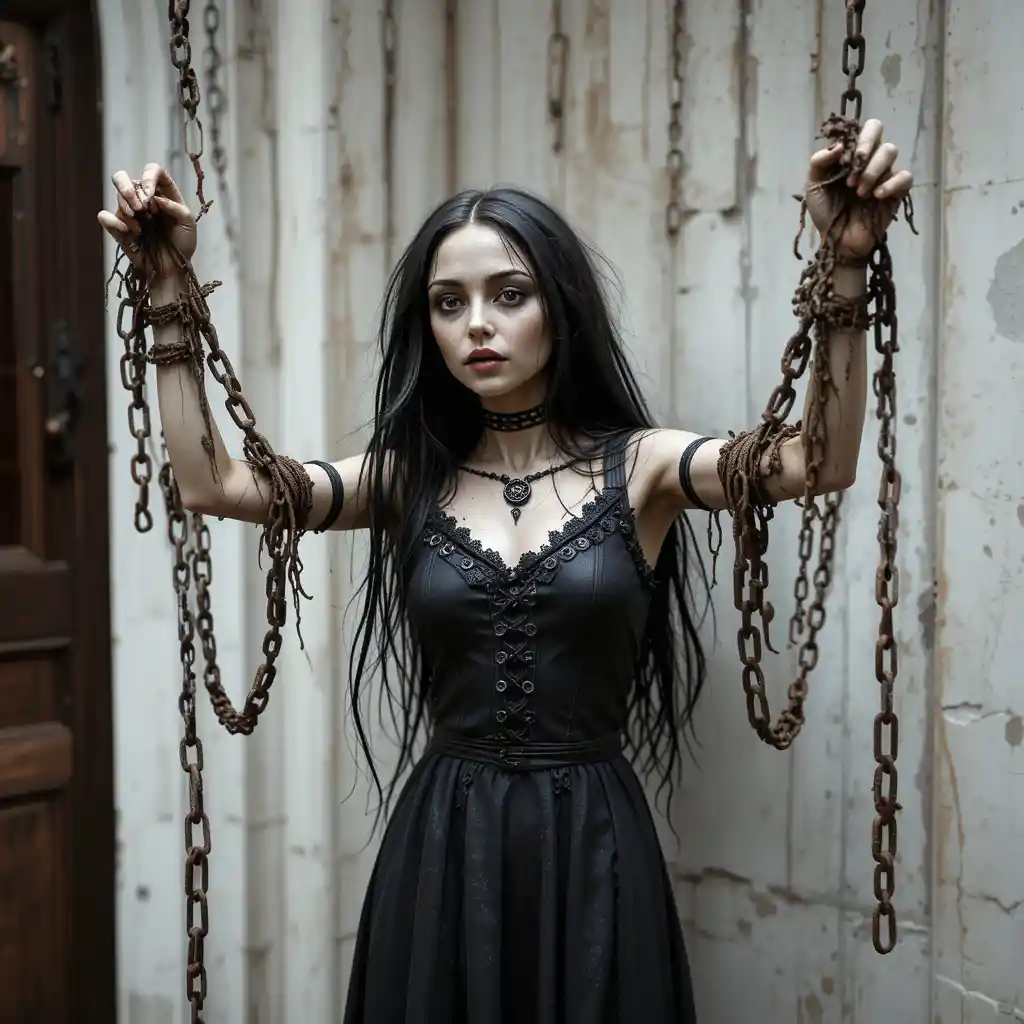 Add rusty chains around the arms of a floating girl figure to make it appear as if she has broken free from captivity. This adds a dark storytelling element to your Halloween setup.