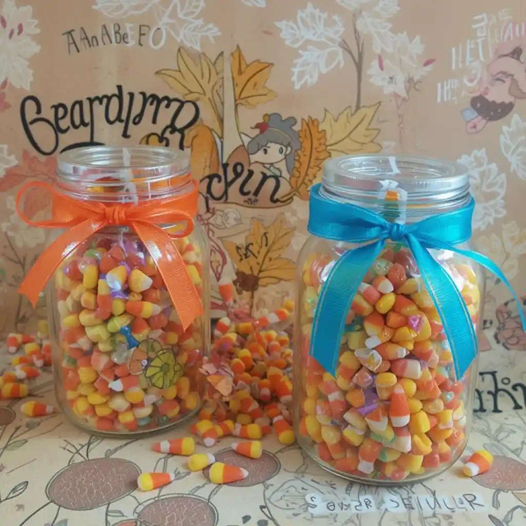 Fill jars with layers of candy corn and let kids decorate the outside with ribbons or stickers. These colorful jars add sweetness to the décor.