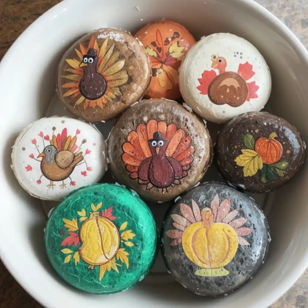 Paint stones with Thanksgiving symbols like turkeys, pies, or leaves. Kids can use them to tell stories, and the stones double as décor in bowls or trays.