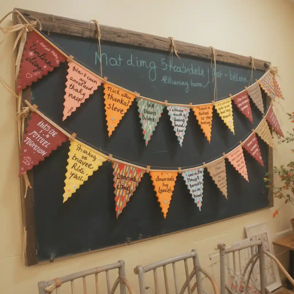 Provide fabric or paper triangles where kids write thankful messages. String them together to create a banner that spreads positivity around the room.