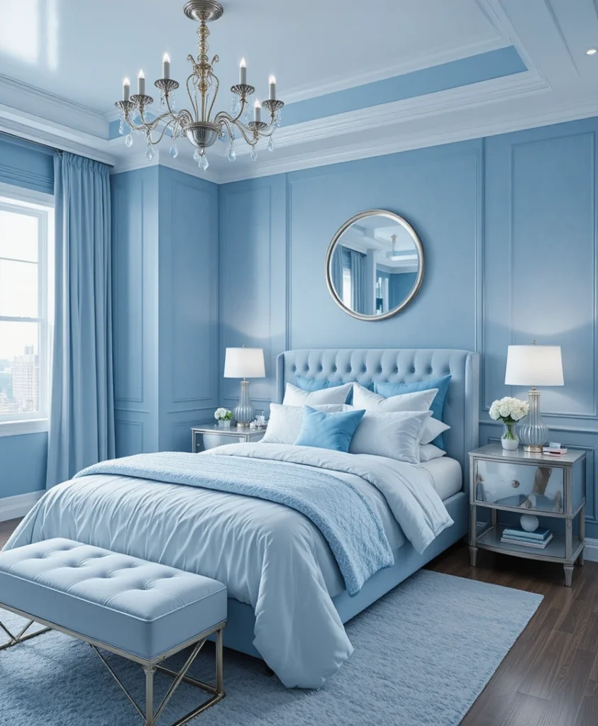 Ice blue delivers a cool, clean aesthetic that feels modern and refined. Silver accents enhance its elegance, making the room feel stylish and futuristic without losing warmth.