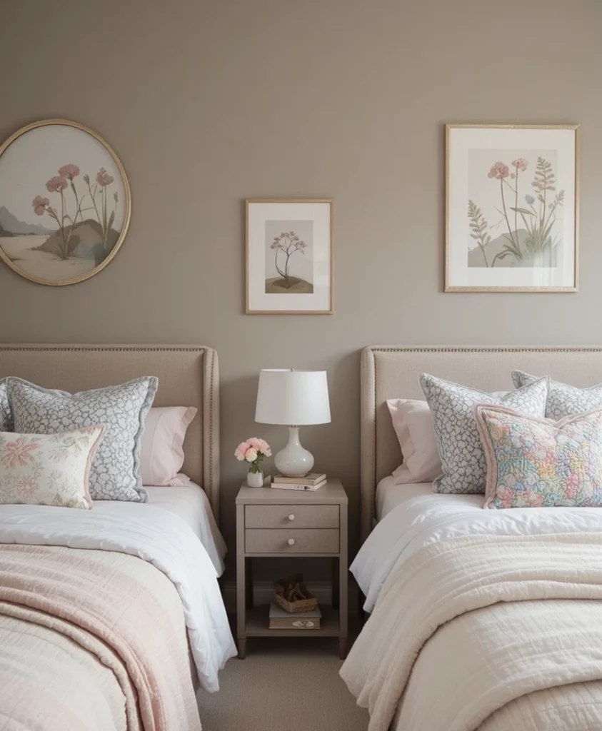 Greige serves as the perfect neutral base, allowing pastel accents to shine subtly. This flexible palette grows with the child, making it one of the most practical girls bedroom colours ideas 2026 for long-term design planning.