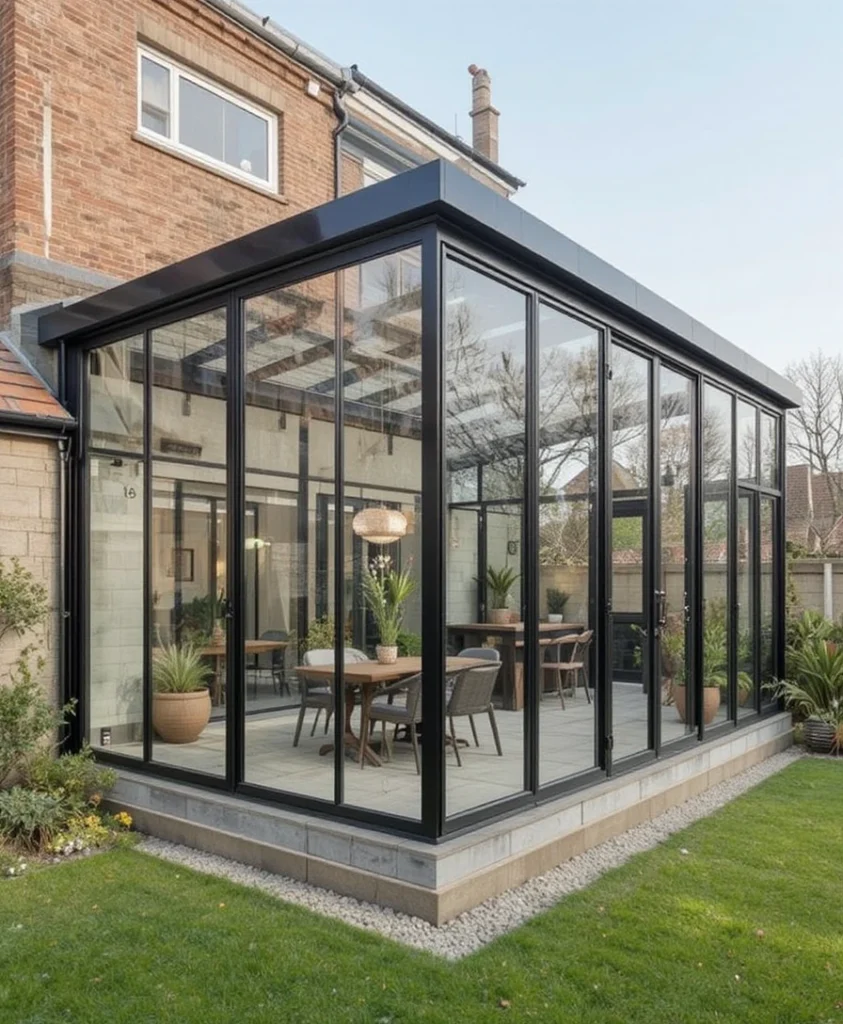 For city homes, a glass sunroom extension adds visual space without heavy construction. Industrial accents like metal frames pair beautifully with glass. These glass sunroom ideas 2026 enhance small urban layouts. The result feels modern, open, and architecturally striking.