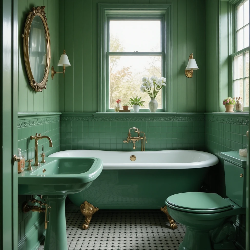 Incorporate vintage green sinks or bathtubs to create nostalgic charm. Pair them with brass or copper fittings to enhance the classic vibe and merge timeless elegance with color creativity.
