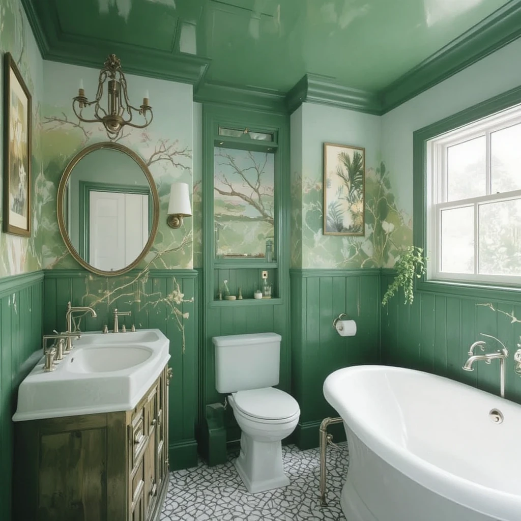 Flip the norm and paint your bathroom ceiling green. This bold approach draws the eye upward, giving the room a sense of height and a unique, immersive atmosphere.