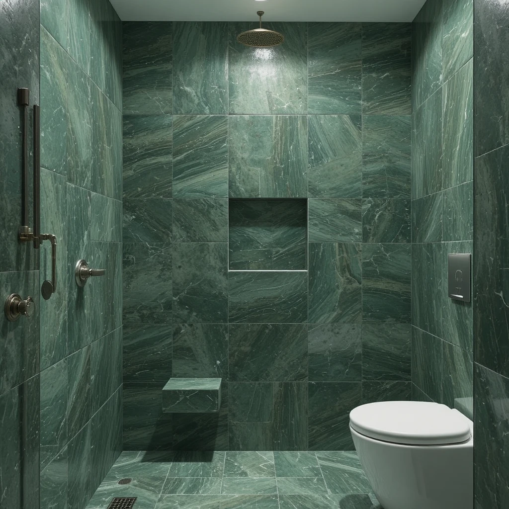 Install green stone shower walls such as jade, serpentine, or soapstone for a raw, luxurious finish. The natural variations in tone and texture create a spa-worthy retreat that feels grounded in nature.