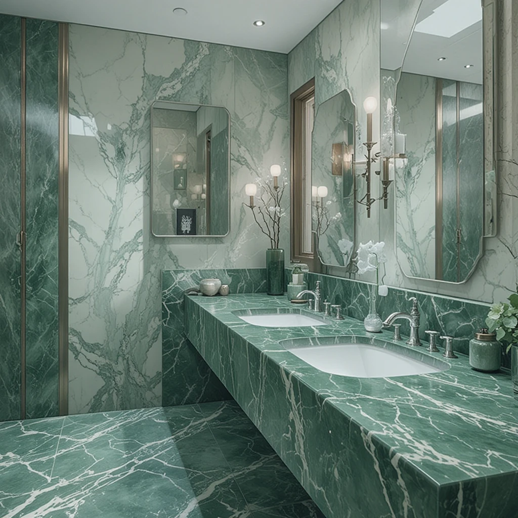 Opt for green marble countertops to add natural luxury. The swirling veins of jade and moss shades provide visual depth and a touch of organic refinement that blends modern and traditional design effortlessly.