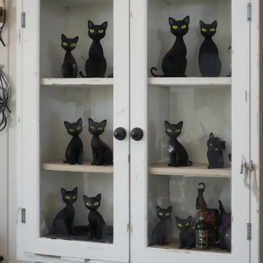 Place black cat figurines on your cabinet shelves or stick cat silhouettes on the doors. Pair them with glowing yellow eyes for a spooky feline vibe.
