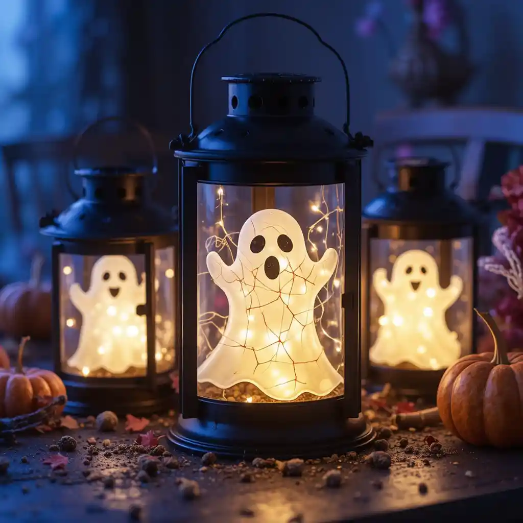 Use lanterns filled with mini LED lights or glowing ghost cutouts. The soft illumination adds warmth while keeping the spooky Halloween spirit alive.