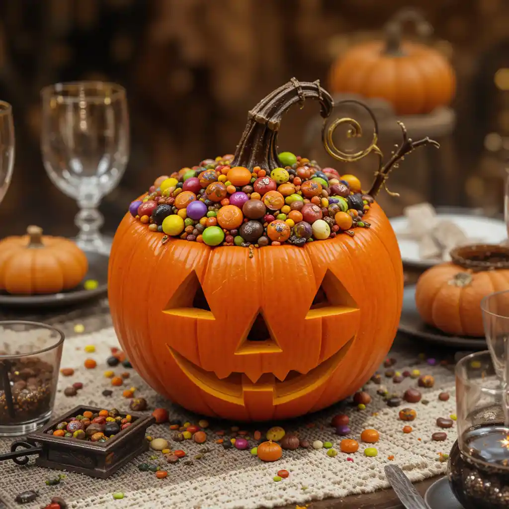 Carve out a pumpkin and fill it with Halloween candy mix. Not only is it decorative, but guests can also enjoy sweet treats straight from the centerpiece.