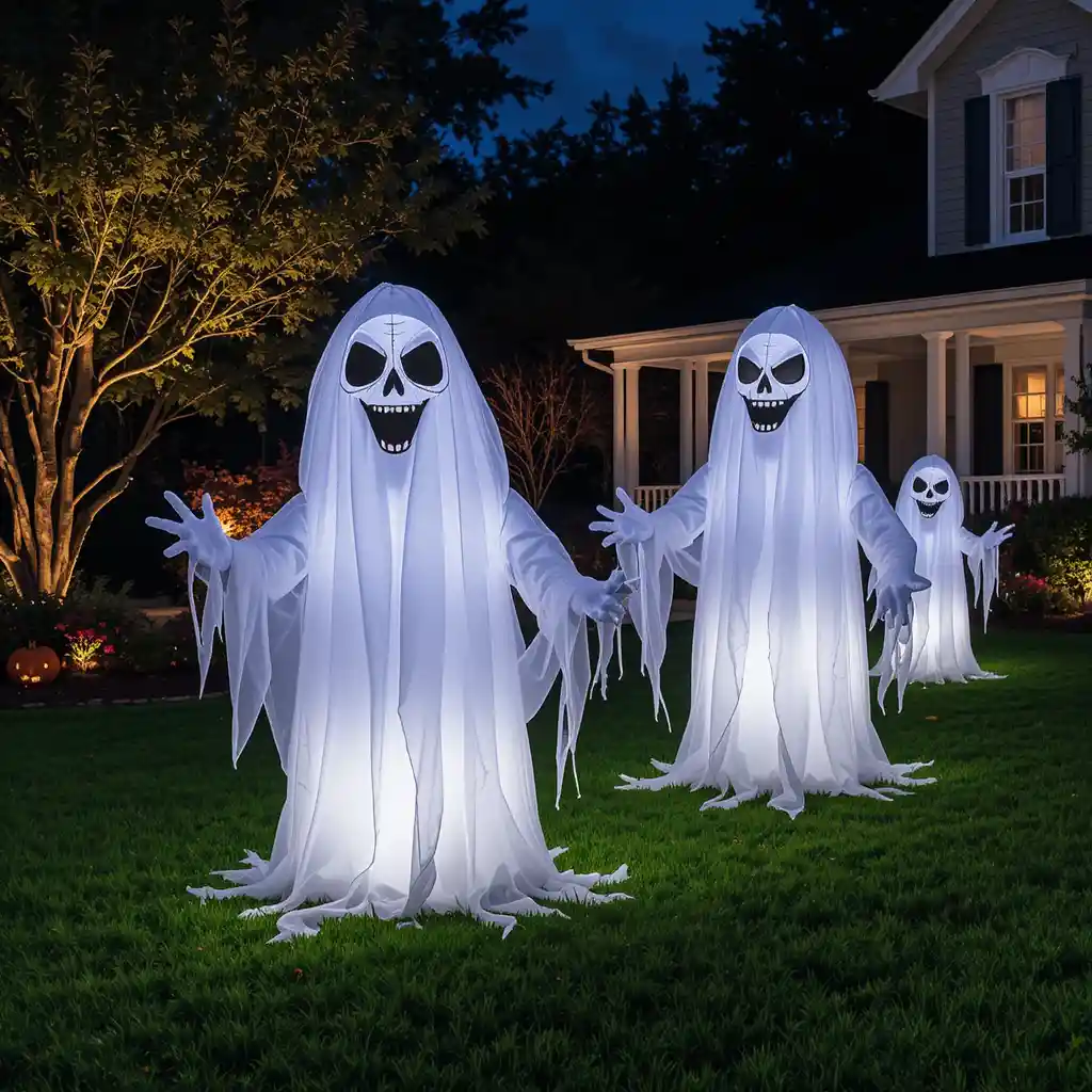 Towering inflatable ghosts create an eerie look that’s visible from a distance. Their size and glowing lights make them a perfect centerpiece for your lawn.