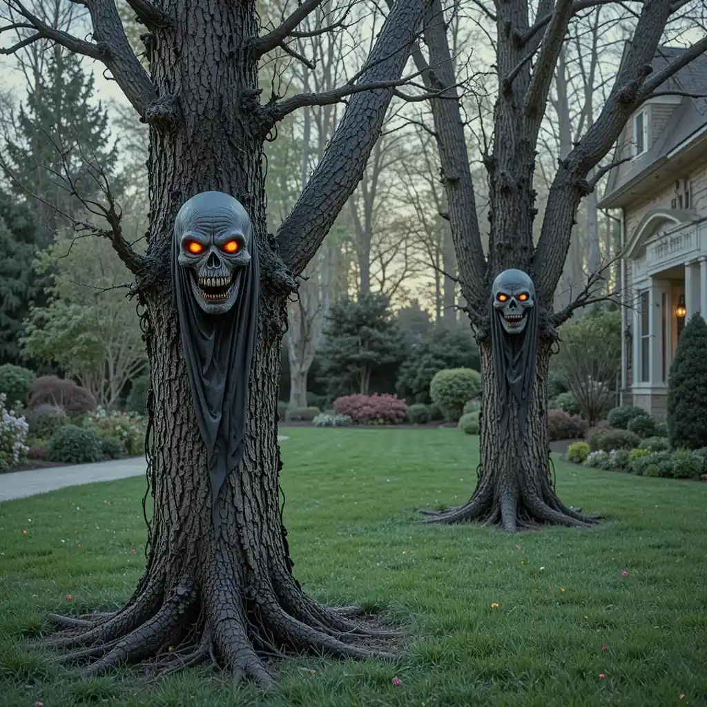 Attach creepy face decorations to your trees. With glowing eyes, they look like living monsters watching over your yard.