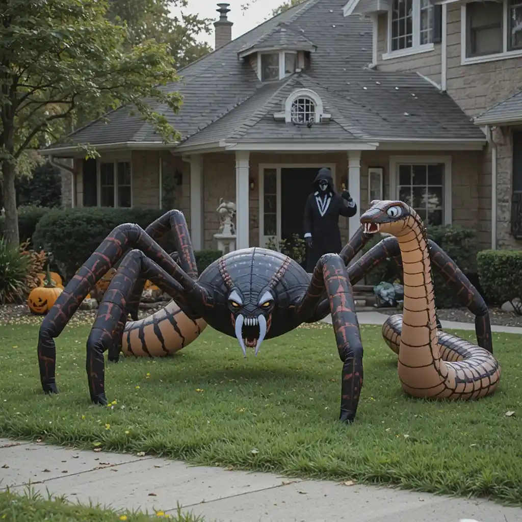 Inflatable creatures like giant spiders or snakes instantly make your lawn spooky. Their size and movement attract everyone’s attention.