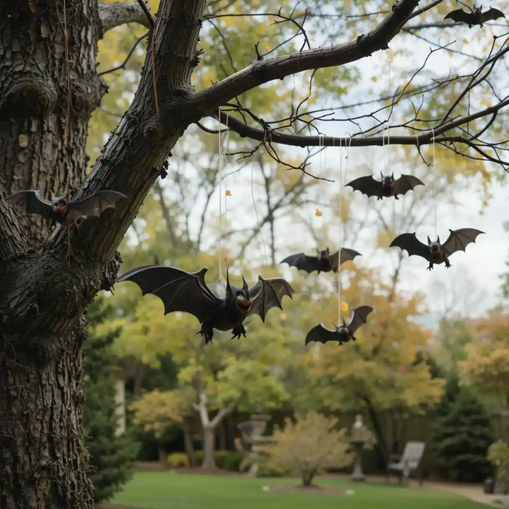 Suspend plastic bats from tree branches with fishing line. As they sway in the wind, it looks like they’re flying through the night.