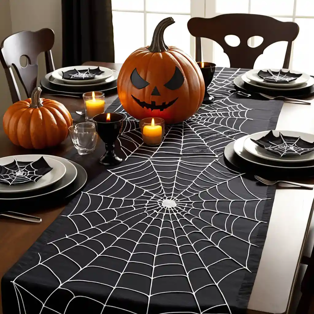 Use spider web or pumpkin-patterned runners on bedside tables or dressers to tie the whole theme together.
