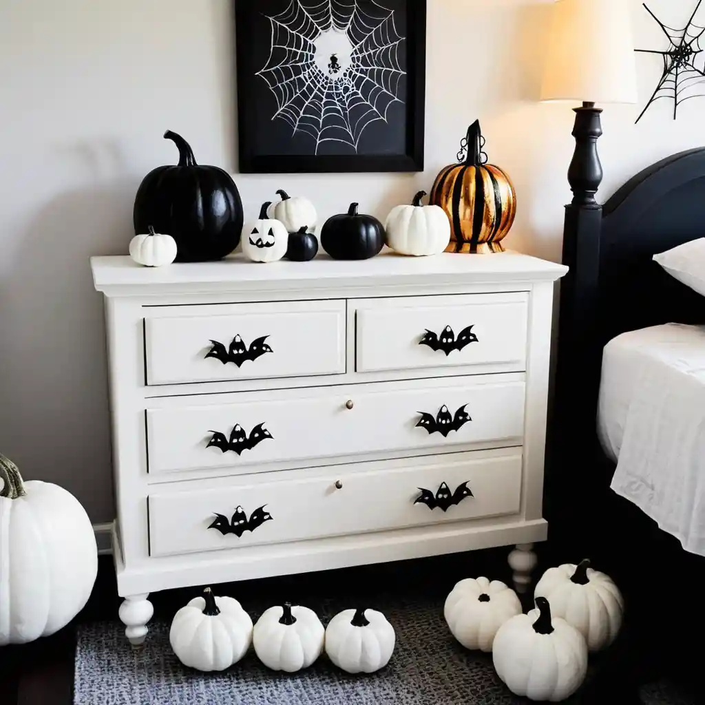 Scatter mini pumpkins across nightstands, dressers, or shelves. Mix real and faux for variety.