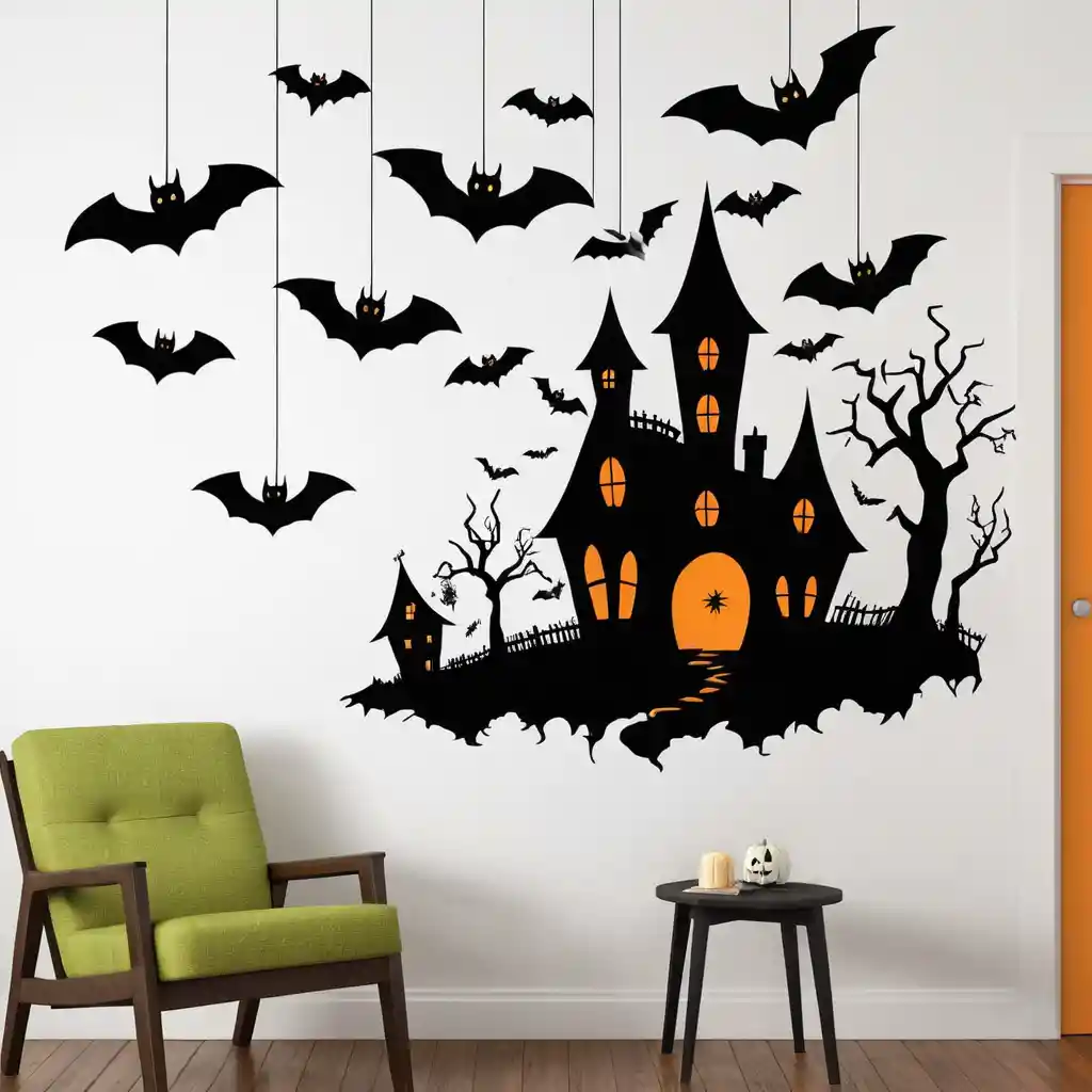 Use removable decals of spiders, bats, or haunted houses. They peel off easily and won’t damage your walls.