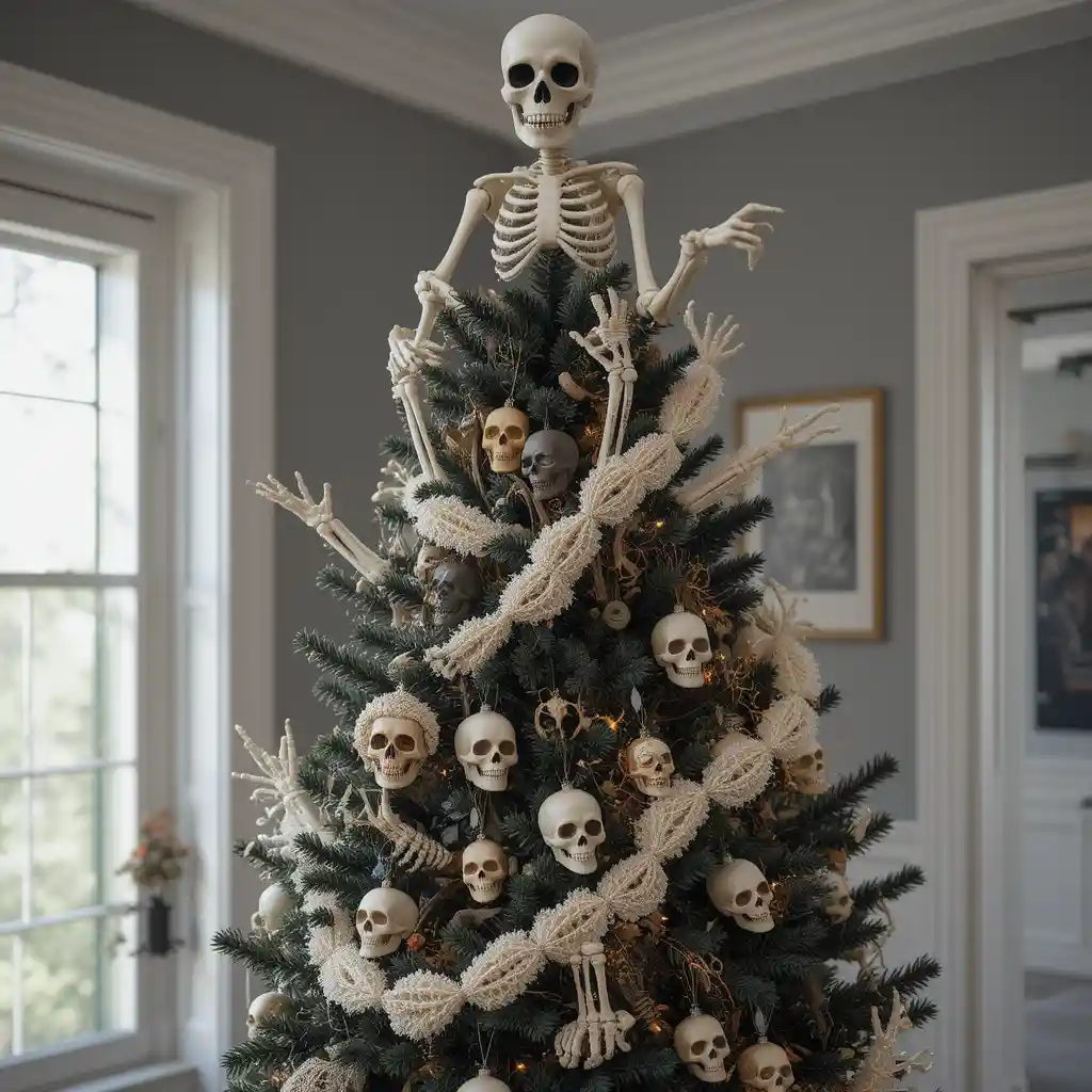 Decorate your tree with skeleton hands, skull ornaments, and bone garlands. A skeletal tree topper will tie the theme together perfectly.