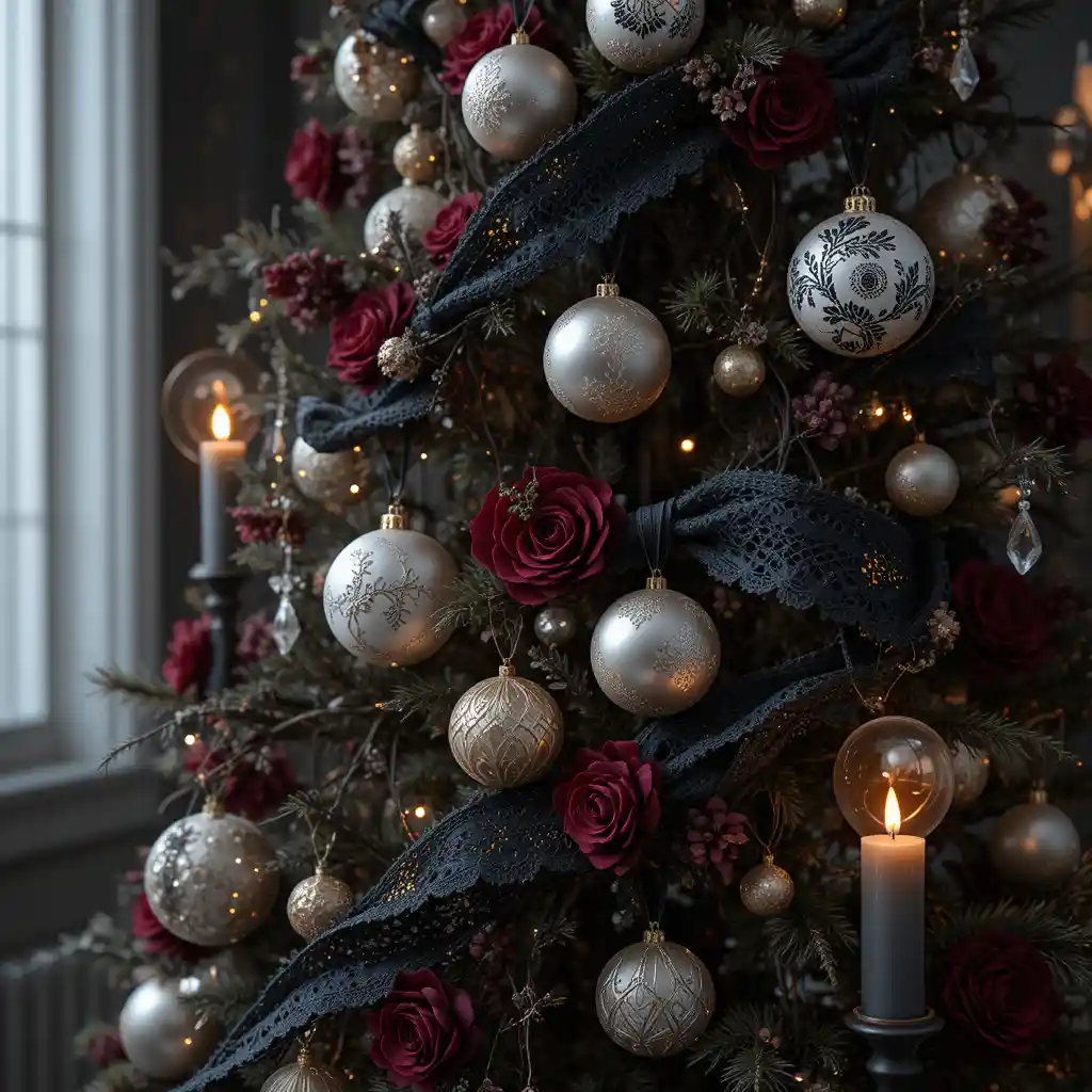 For a more stylish look, use black lace garlands, silver ornaments, and deep burgundy flowers. Pair them with flickering LED candles for a gothic-chic statement.