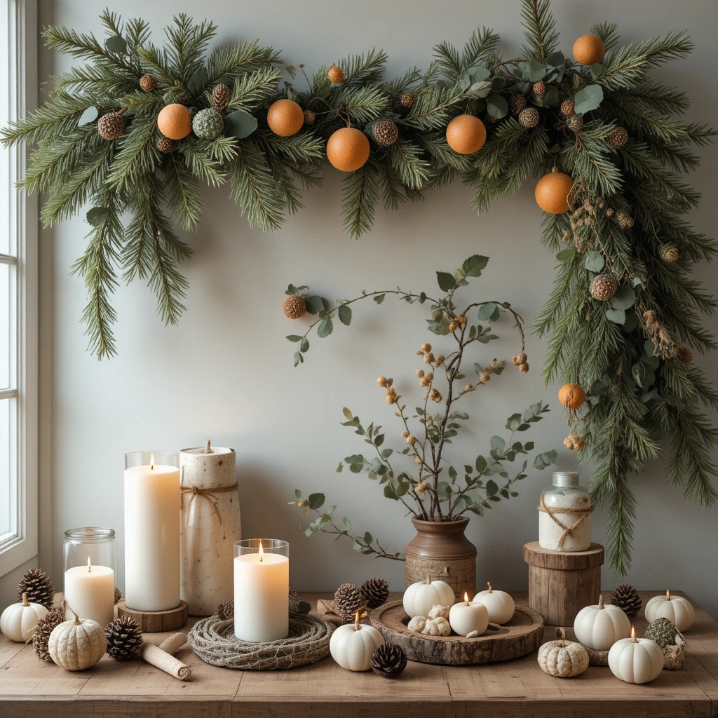 3. Rustic Natural Décor with Evergreen Touches