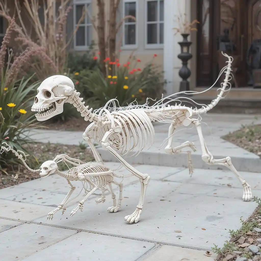 Pair your skeleton dog with a skeleton cat for a humorous chase scene. This combo is guaranteed to make trick-or-treaters laugh.