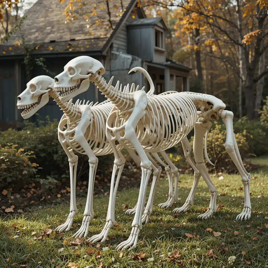 Arrange two or three large dog skeletons together like a ghostly pack. This setup creates the illusion of a haunted hunting group patrolling your yard.