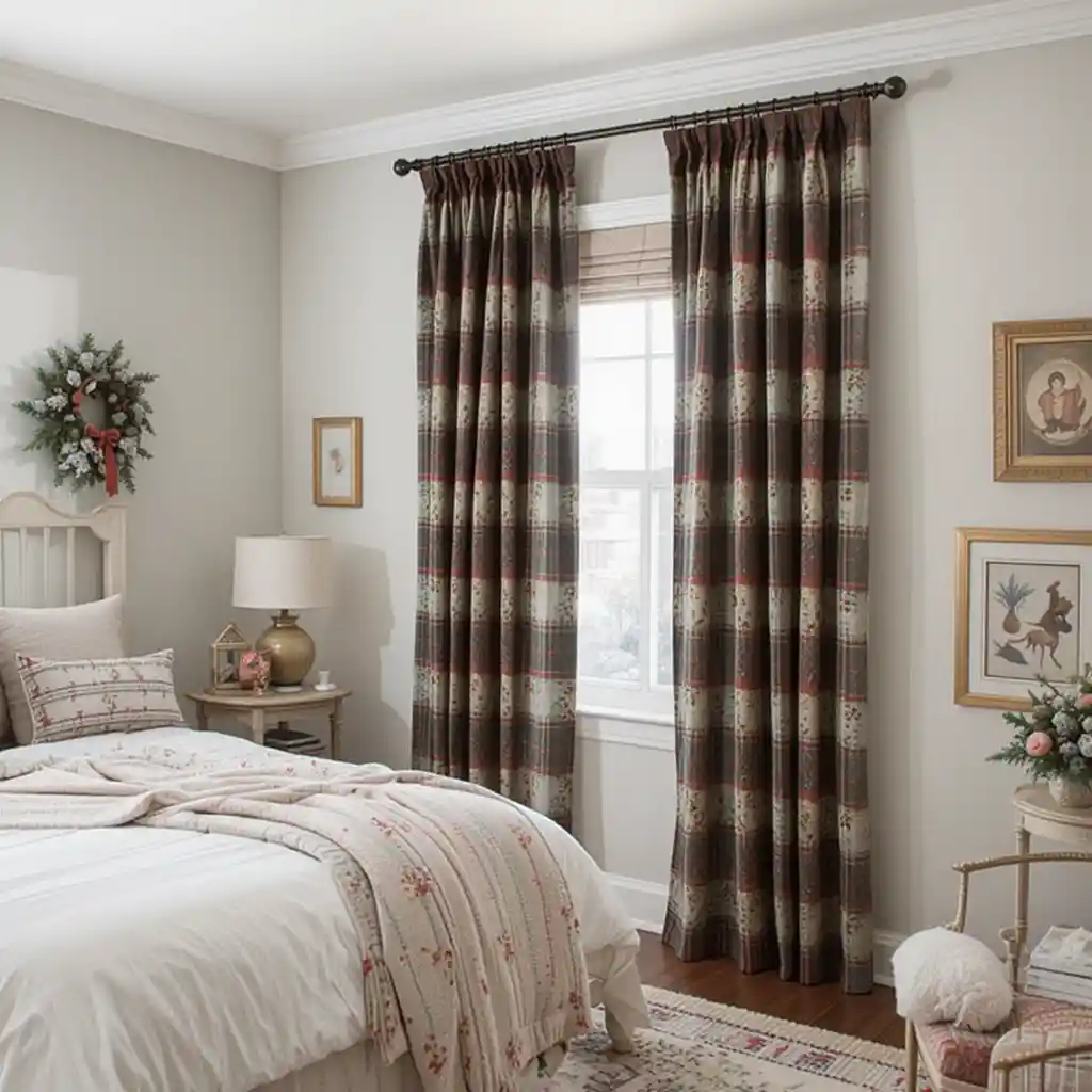 Replace lightweight curtains with flannel or heavier drapes in holiday tones. Not only do they enhance warmth, but they also frame your bedroom in seasonal style.