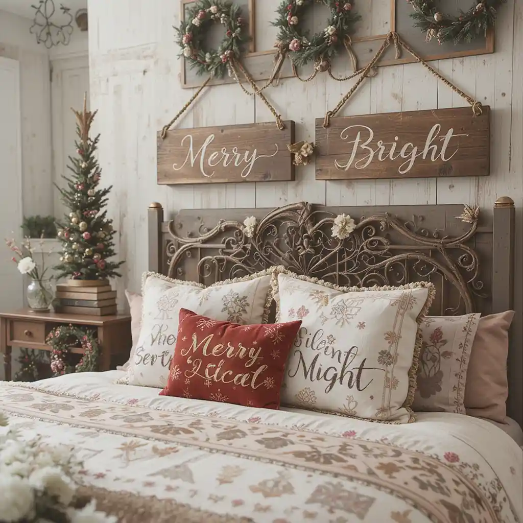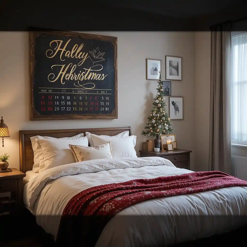 Incorporate a stylish wooden or chalkboard countdown calendar near the bed. It builds anticipation each day, blending décor with holiday excitement.