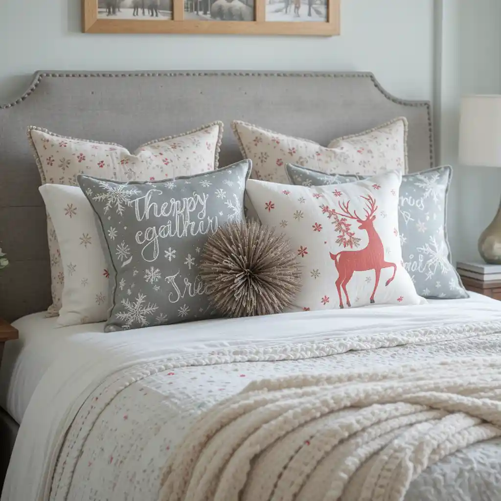 Introduce throw pillows featuring snowflakes, reindeer, or festive quotes. These small additions can make the bed feel styled and tailored for the season without overwhelming the décor.