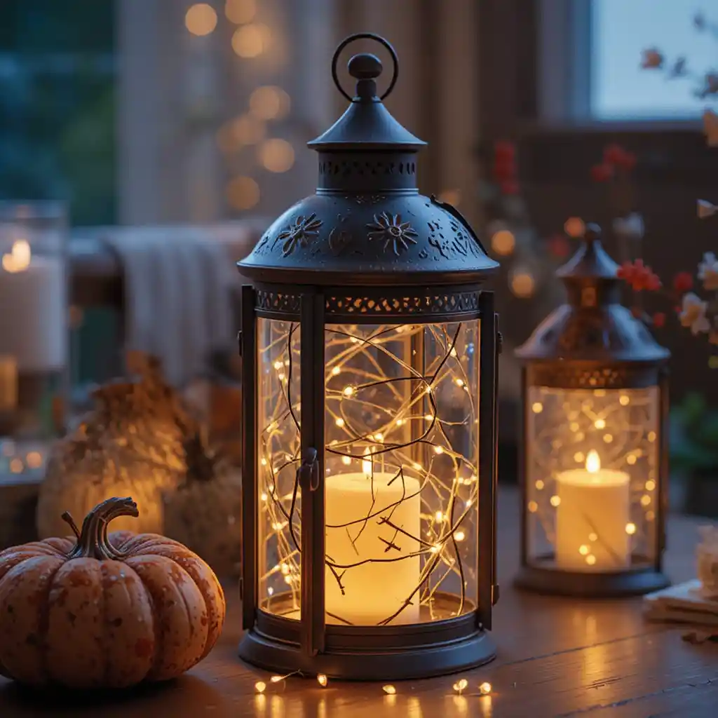 Place string lights inside a decorative lantern instead of a candle. This safe and beautiful option works indoors or outdoors for a warm seasonal accent.