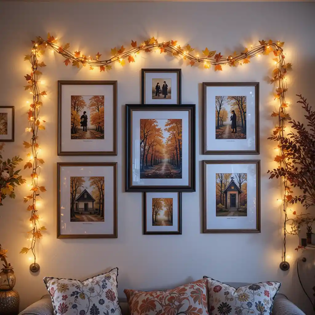 Frame your autumn artwork or photo display with fairy lights. The warm illumination makes your seasonal wall décor pop and feel extra special.
