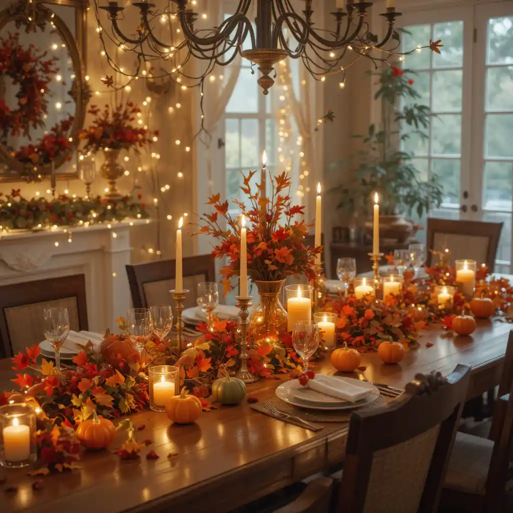 For autumn dinner parties, intertwine fairy lights with seasonal garlands down the center of your table. The soft lighting will enhance the warm colors of pumpkins, leaves, and candles, creating a cozy dining experience.