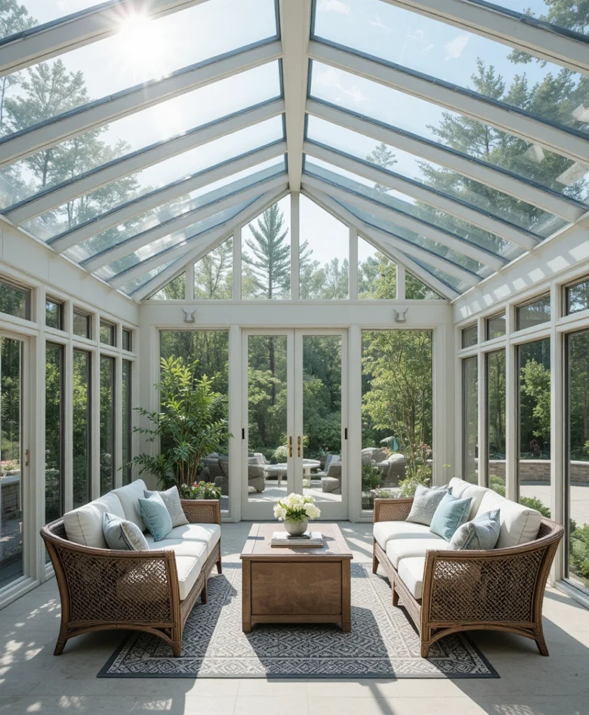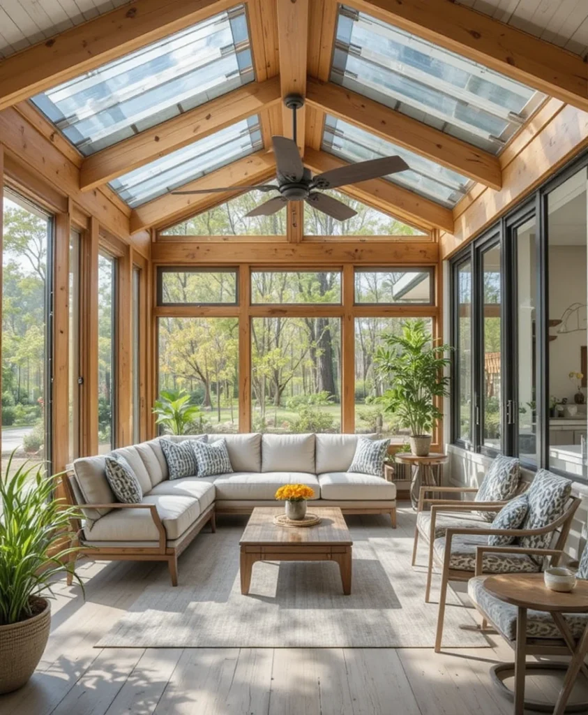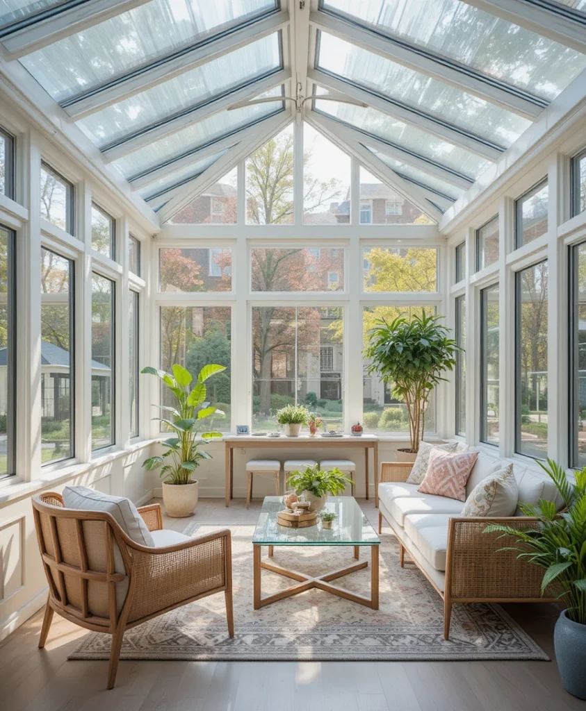 Advanced insulation and energy-efficient glass make this sunroom usable year-round. Climate control systems are discreetly integrated for comfort. As a modern sunroom idea 2026, it proves that functionality and style can coexist effortlessly.