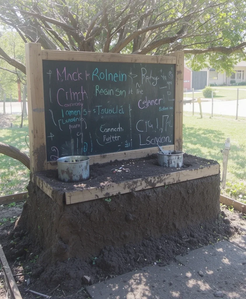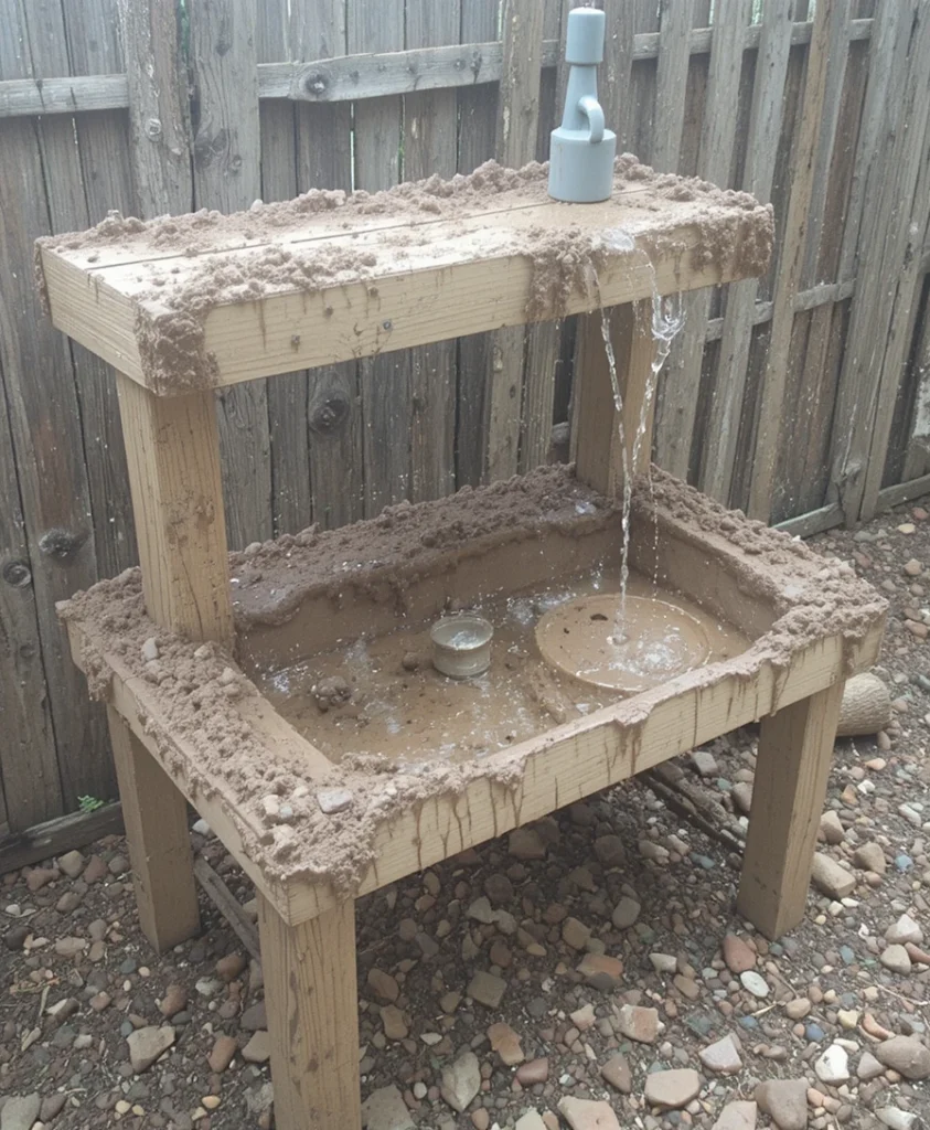 Adding a small water feature enhances the sensory experience. I use simple pipes or containers to create a flowing effect. It makes mixing and “cooking” more engaging. This idea turns a basic Mud Kitchen DIY into something extraordinary.